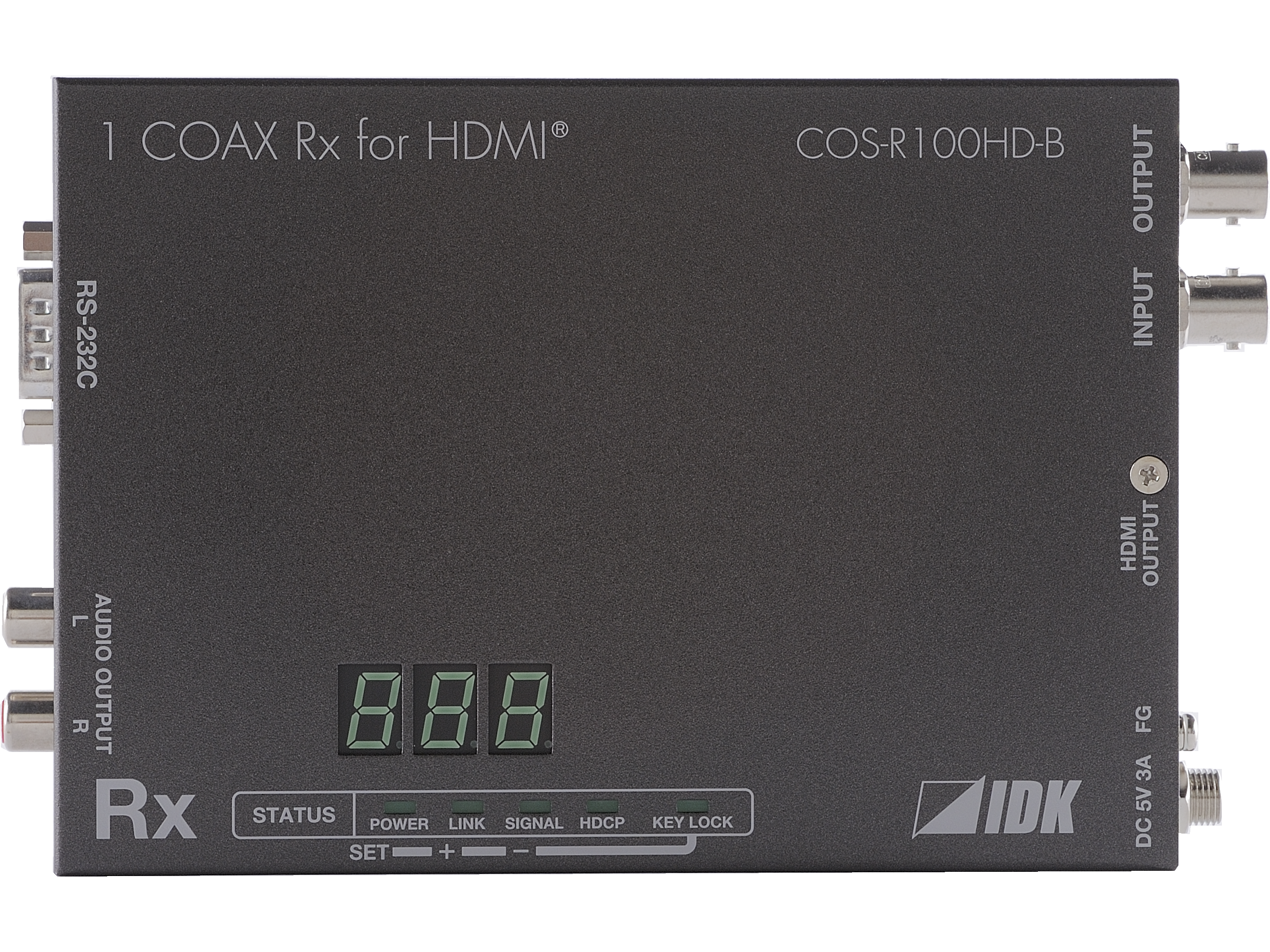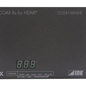 Bộ nhận tín hiệu hình ảnh IDK COS-R100HD-B sử dụng cáp đồng trục để truyền tín hiệu hình ảnh hay âm thanh đi xa. Thiết bị này tương thích với chuỗi daisy và có thể mở rộng và phân phối tín hiệu video và âm thanh bằng cách kết hợp với bộ đẩy, chỉ cần một bộ truyền bạn có thể mở rộng rất nhiều điểm thu. Nó cũng hỗ trợ giao tiếp điều khiển hai chiều nối tiếp RS-232C.