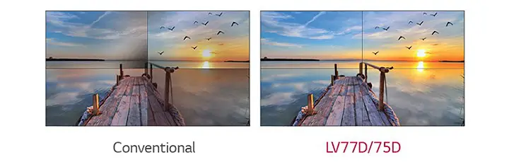 Màn hình ghép 55LV77D có thiết kế viền khi ghép lại mỏng 3.5 mm tạo trải nghiệm xem đắm chìm và gần như liền mạch.