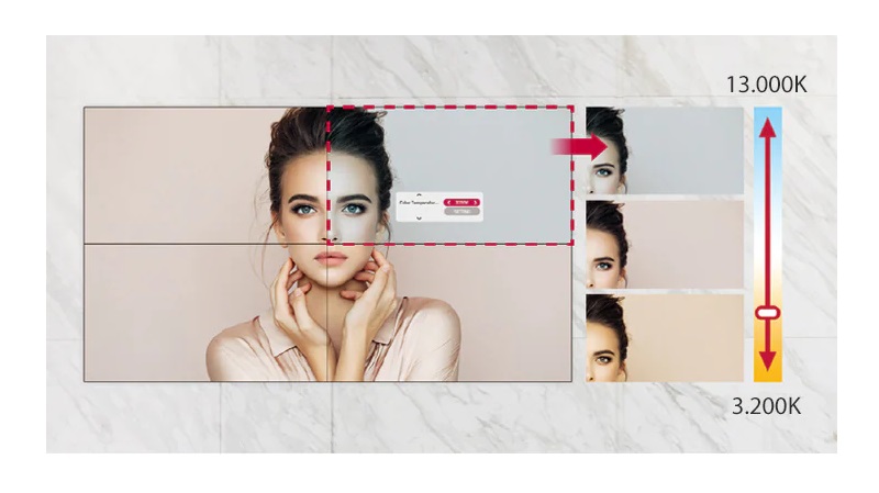 Tùy thuộc vào nội dung, nhiệt độ màu của màn hình có thể dễ dàng điều chỉnh theo mức tăng 100K bằng điều khiển từ xa.