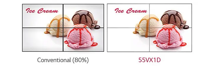Màn hình ghép 55VX1D có kích thước viền 3,5 mm tạo ra trải nghiệm xem liền mạch.