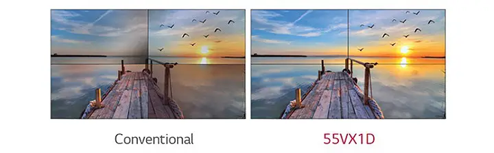 55VX1D là màn hình sử dụng công nghệ tạo hình ảnh video wall (VIC), sự khác biệt về màu sắc và độ sáng được bù đắp trong phần mạch với một thuật toán để làm cho các tấm nền thành một đặc tính giống nhau để mỗi màn hình duy trì cân bằng trắng đồng nhất.