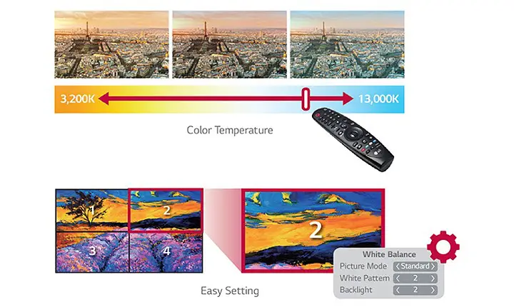 Tùy theo nội dung mà người dùng có thể dễ dàng điều chỉnh nhiệt độ màu của màn hình bằng điều khiển từ xa.