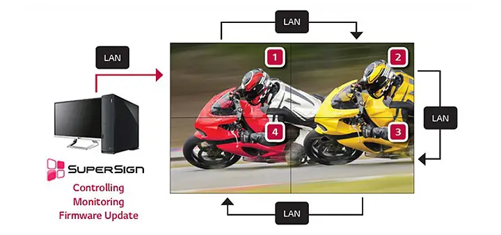 Chuỗi LAN daisy chain cho phép người dùng kiểm soát và giám sát bảng chỉ dẫn, phân phối nội dung và thậm chí cập nhật chương trình cơ sở cùng một lúc.