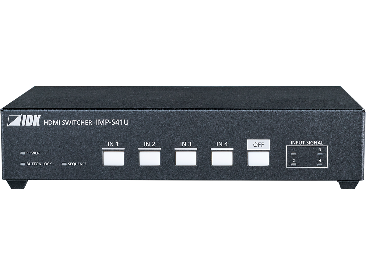 Bộ chuyển đổi Switcher HDMI IMP-S41U là bộ chuyển đổi HDMI 4K @ 60 Hz tương thích HDCP 2.2 với bốn đầu vào và một đầu ra.